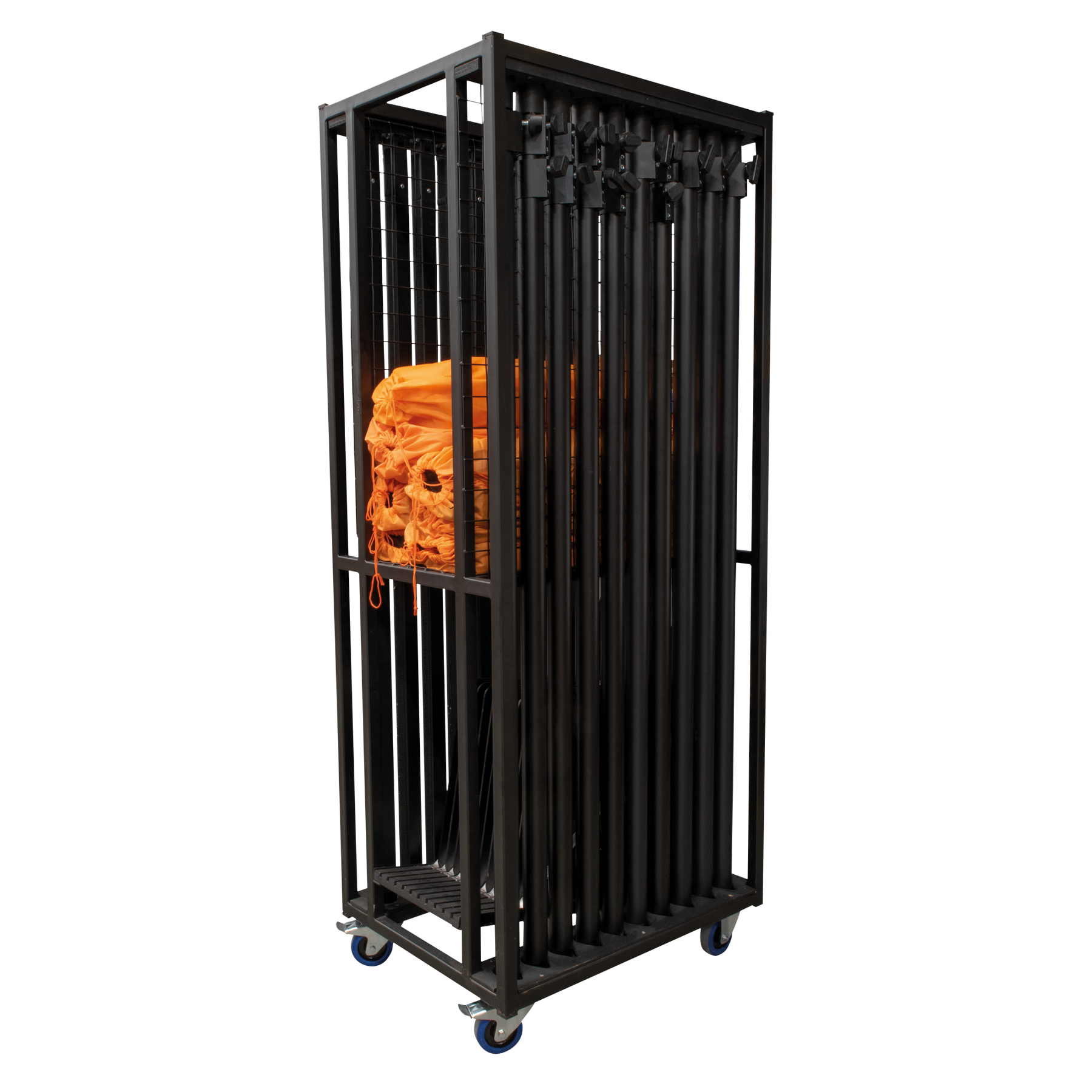 • Alles an einem Ort: Platz für bis zu 9 Pipe & Drape-Vorhänge, 10 Stützen, 10 Teleskopstützen, 10 Grundplatten sowie 10 Grundplattenstifte.